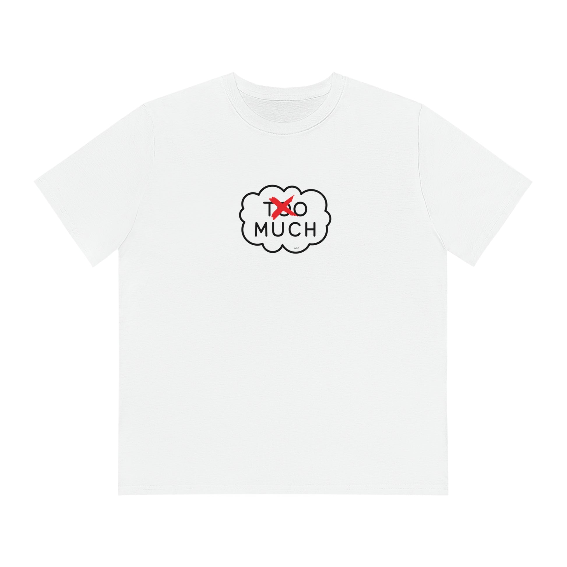 Le design du T-shirt met en avant l'astucieux jeu de mots, avec "Too" barré, transformant un potentiel reproche en une affirmation positive de "Much". C'est l'expression parfaite pour ceux qui embrassent leur essence au maximum, refusant de se laisser définir par les standards ou les attentes des autres.